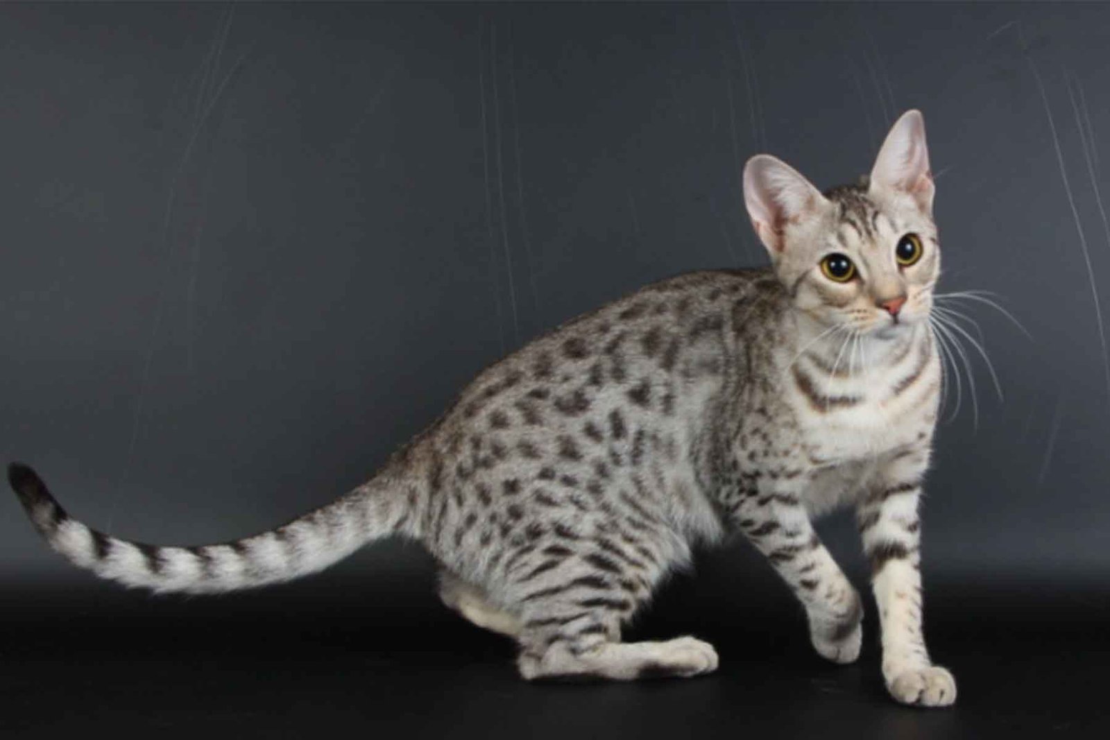 The Australian Mist stands out with its striking spotted coat. Featuring short and dense fur, the breed displays various colours like peach, gold, and tan. Signature traits include: